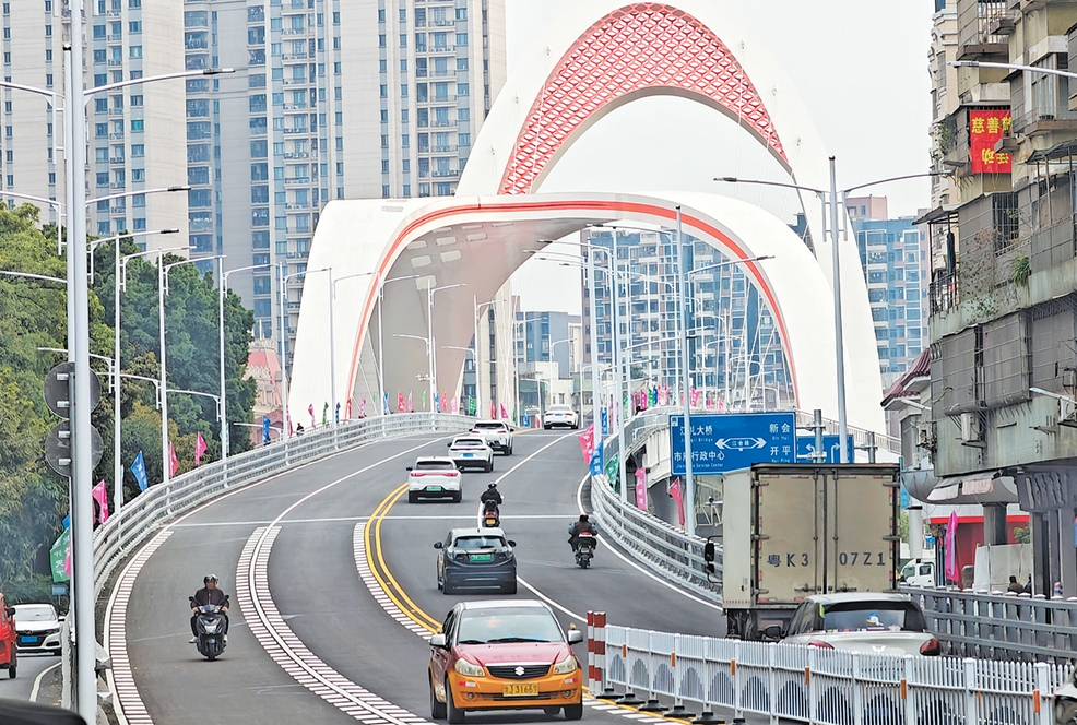 江門船廠跨江橋通車,將有效緩解江禮大橋行車壓力。 郭永樂 攝