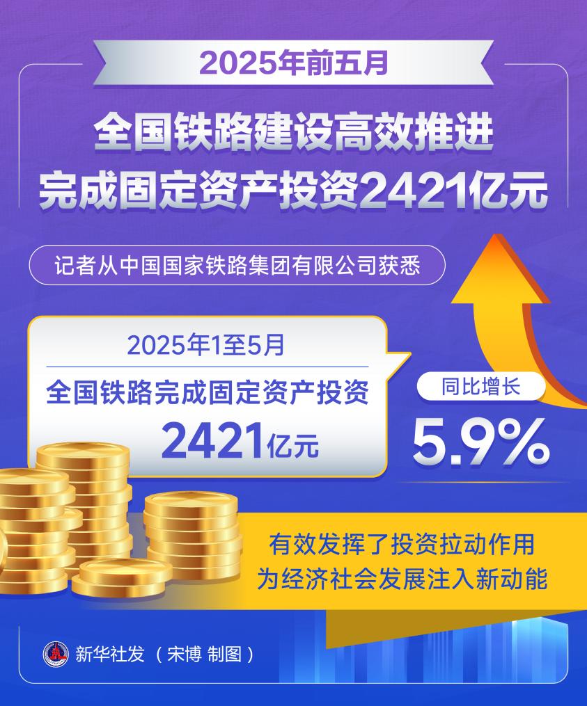 ??新華社北京6月15日電 題:今年前五月全國鐵路建設高效推進 完成固定資產(chǎn)投資2421億元