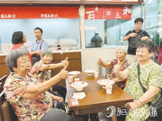 ????沖蔞三和云吞館(萬達(dá)店)成為臺山市長者飯?zhí)么壬浦忘c(diǎn),更是臺山市構(gòu)建多元化養(yǎng)老服務(wù)體系的生動實(shí)踐。通過“政府搭臺、企業(yè)參與、金融助力、社區(qū)協(xié)同”的多方聯(lián)動機(jī)制,目前,臺山全市已實(shí)現(xiàn)17個(gè)鎮(zhèn)(街)長者飯?zhí)眉爸忘c(diǎn)全覆蓋,日均服務(wù)450人次,2025年以來累計(jì)實(shí)現(xiàn)助餐服務(wù)4.5萬人次。