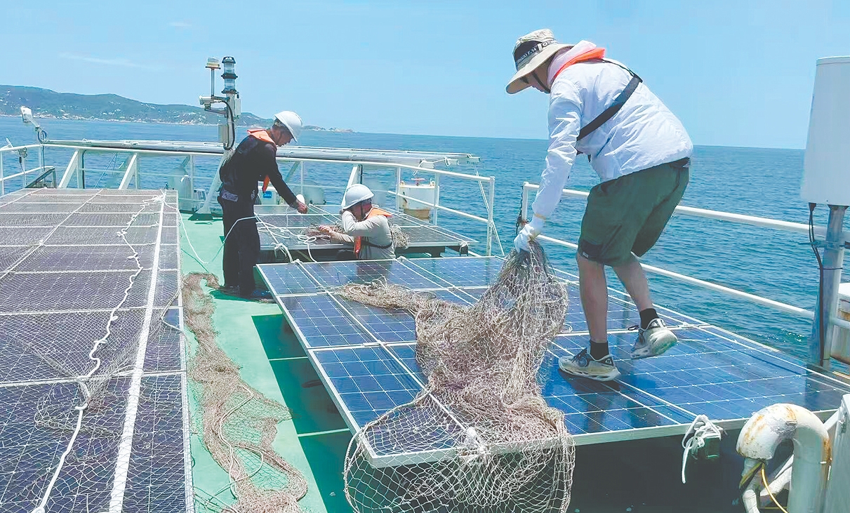 位于臺(tái)山川島海域的海洋牧場(chǎng)重要現(xiàn)代裝備“臺(tái)山1號(hào)”已進(jìn)入半潛狀態(tài),平臺(tái)外部設(shè)施均已加固完成。臺(tái)山海洋集團(tuán)供圖