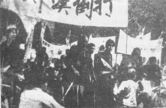 ????1942年七八月間,紅線女跟隨馬師曾帶領(lǐng)的劇團(tuán)進(jìn)入廣西演出。為了配合抗日宣傳以及為抗戰(zhàn)籌款勞軍,他們演出馬師曾自己編寫、痛斥漢奸賣國賊的《洪承疇》等戲劇,借古諷今。其中有一段唱道:“衰漢奸、病漢奸,千刀千刀理該斬……”由獨(dú)唱到全場合唱,節(jié)奏由慢而快,氣氛熱烈,整個(gè)劇場掌聲雷動(dòng),群眾不由得振臂高呼“打倒?jié)h奸賣國賊!”