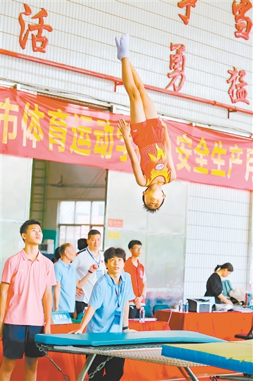 記者在現(xiàn)場(chǎng)見(jiàn)到,隨著裁判一聲令下,運(yùn)動(dòng)員依次登場(chǎng)。他們腳踏蹦床,騰空而起,翻轉(zhuǎn)、騰挪、旋轉(zhuǎn),動(dòng)作流暢優(yōu)美,如同“空中芭蕾”表演(見(jiàn)上圖)。