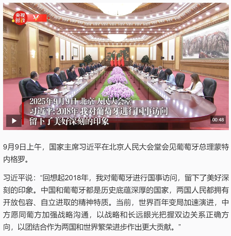 習(xí)近平:2018年 我對(duì)葡萄牙進(jìn)行國(guó)事訪問(wèn) 留下了美好深刻的印象