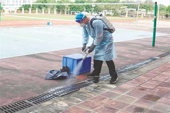 臺(tái)山市各學(xué)校每日開展消殺,從源頭上鏟除蚊蟲孳生環(huán)境。