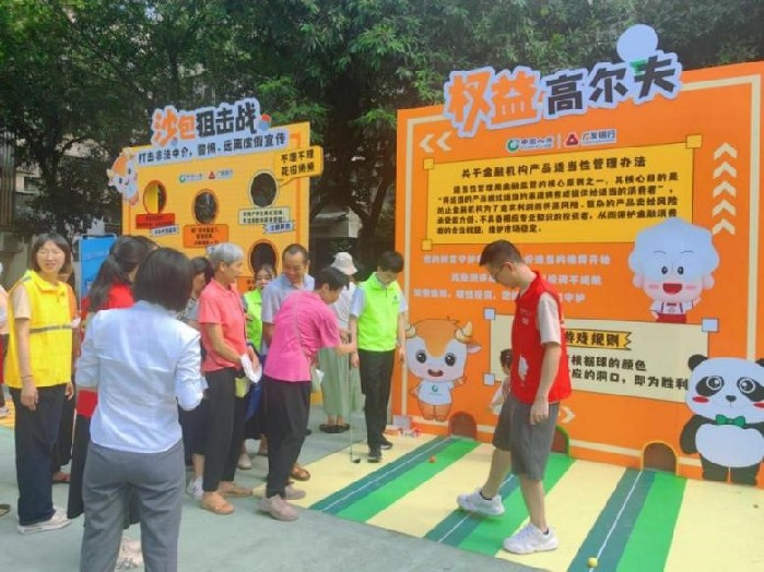 活動現(xiàn)場還精心設(shè)置了三大體驗區(qū),構(gòu)成了一個集教育、互動、服務(wù)于一體的迷你創(chuàng)意市集。“權(quán)益高爾夫”“沙包狙擊戰(zhàn)”兩大游戲吸引眾多銀齡客戶參與。在“權(quán)益高爾夫”中,參與者通過推桿進(jìn)洞學(xué)習(xí)金融消費者八大權(quán)益;“沙包狙擊”則以擊打“非法集資”“高息誘惑”等標(biāo)靶的方式,幫助老年人識別詐騙套路,現(xiàn)場歡聲笑語不斷。