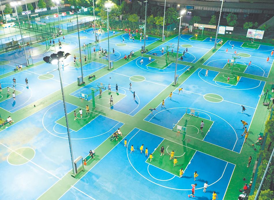 ????除了大型體育公園,江門還“見縫插針”完善社區(qū)健身設(shè)施。在江海區(qū)外海街道四大社區(qū),老舊休閑公園改造后,新增兒童籃球場;在禮樂街道新民村,高速公路橋下的閑置空間也被充分利用起來,建設(shè)成規(guī)范的燈光籃球場……