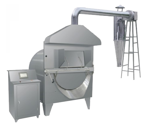 本機采用PLC+觸摸屏控制,數(shù)控化生產(chǎn),可設定及存貯溫度、轉(zhuǎn)速、時間等工藝參數(shù)。采用特殊滾輪支撐裝置支撐炒藥滾筒,滾筒轉(zhuǎn)動平穩(wěn),電磁直接加熱滾筒,升溫迅速。滾筒外加保溫層,測溫探頭可直接測量滾筒溫度。本機具有加熱速度快.熱效率高之優(yōu)點,符合GMP要求。